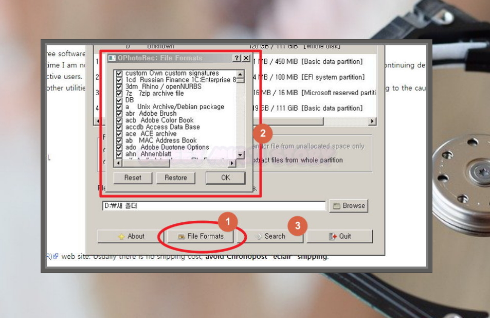 1. 사람들이 컴퓨터 하드디스크 또는 SD카드에 있는 파일을 복구할 때에 많이 사용하는 프로그램이 있어요. 나름 삭제한 파일을 잘 되살리기는 하지만, 무료로 사용하는 경우에 제약 조건이 있는데요. 그래서 제약 조건 없이 사용할 수 있는 프리웨어를 찾아 보았어요. 바로 phtorec 인데요. 사용법과 함께 자세히 알려드릴게요.
