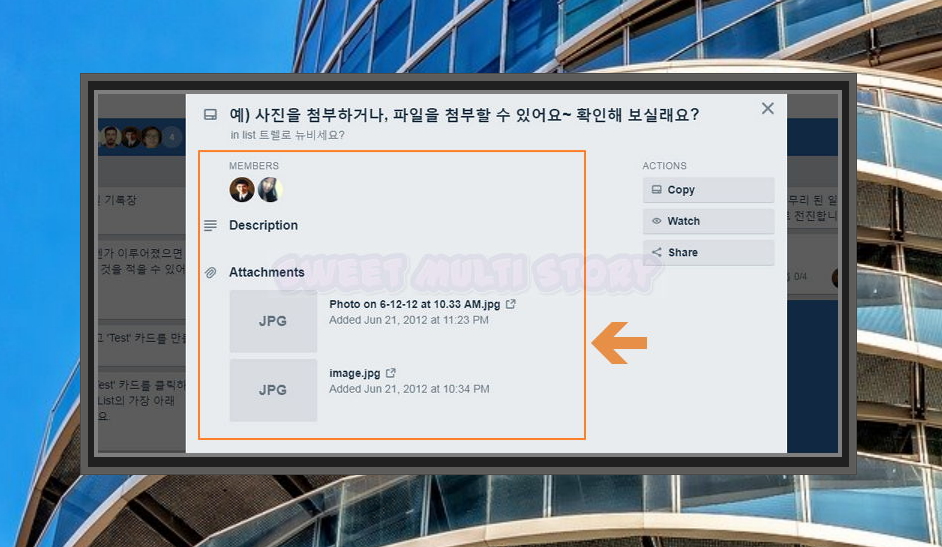 5. 개별 업무에 여러 가지를 추가할 수 있다고 말씀 드렸는데요. 이미지나 파일도 추가 가능하기 때문에 업무에 관련된 파일을 관리하기에도 좋아요.
