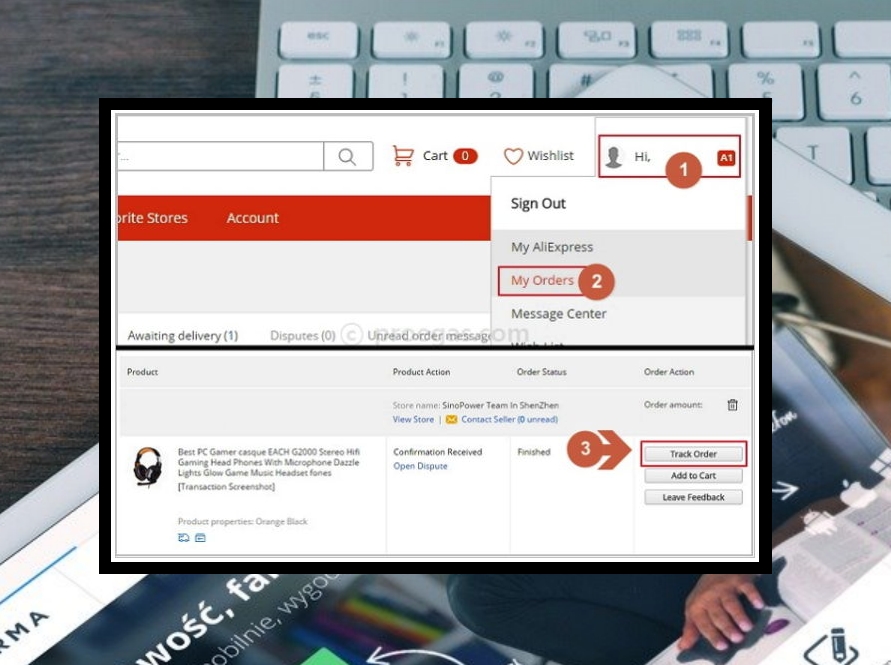 이 부분은 알리익스프레스를 이용해보셨던 분이라면 잘 아실 텐데요. 기본적인 내용이므로 간단하게 핵심만 알려드리겠습니다. 번호 순서대로 하나씩 클릭해주세요.