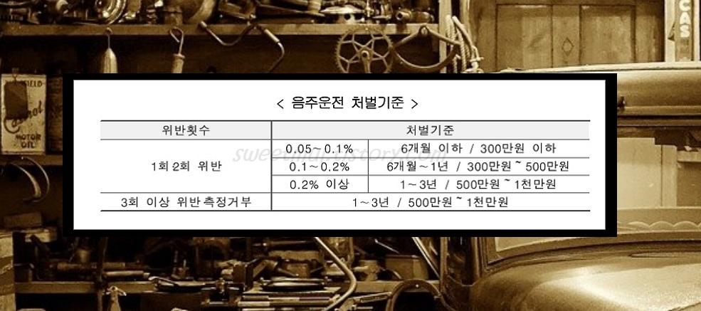 ※ 측정시 알코올 농도가 0.1%이상이거나, 측정 불응시 면허가 취소되는데요. 0.1% 미만인 경우에는 면허정지 기간은 100일이오니 참고하세요.
