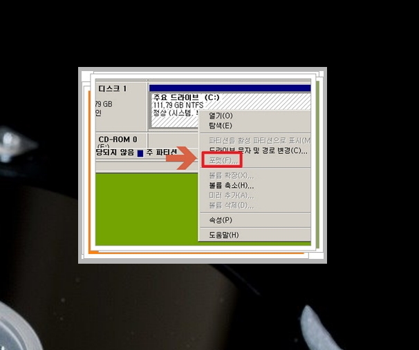 또 다시 오른쪽 버튼을 눌러 해당 디스크[ssd]만 포맷을 해주세요.