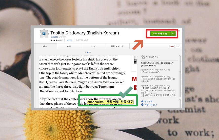 제가 일적으로 외국어 사이트를 접속하는 일이 많습니다. 그럼 간혹 모르는 단어가 나오는 일이 있는데요. 그때마다 사전을 찾아보기 정말 번거롭더라고요. 그래서 대책을 강구해보았습니다.