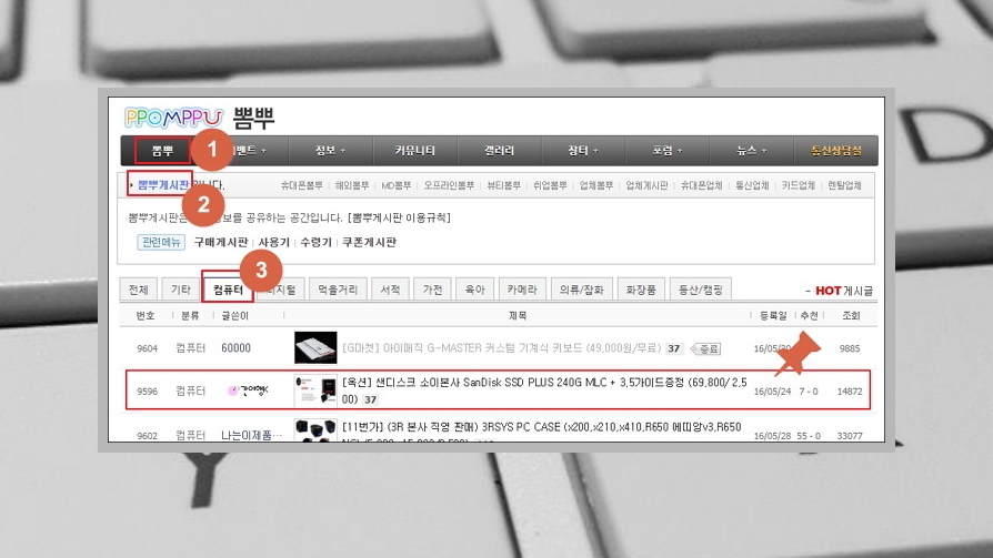 컴퓨터 업그레이드 비용을 최대한 줄이시려면 뽐뿌를 이용하시면 좋습니다. 왜냐하면 어디서 저렴하게 팔고 있으면 뽐뿌게시판에 올려주거든요.^^ 저기 보시면 샌디스크가 저렴하게 나왔다는 게시물이 있네요. 추천도 7개나 되고요.
