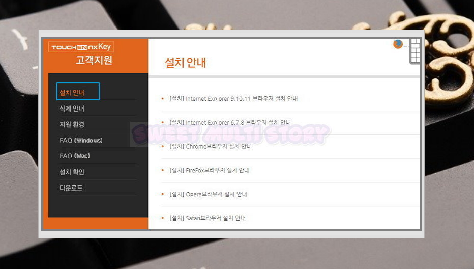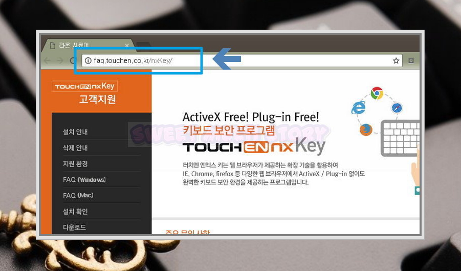 ▲ 다양한 버전의 키보드 보안 프로그램 설치 파일을 내려 받거나 안내를 받을 수 있는 사이트의 주소입니다. 익스플로러, 크롬, 파이어폭스 등 어떤 브라우저를 사용하던 키보드를 안전하게 사용할 수 있습니다.