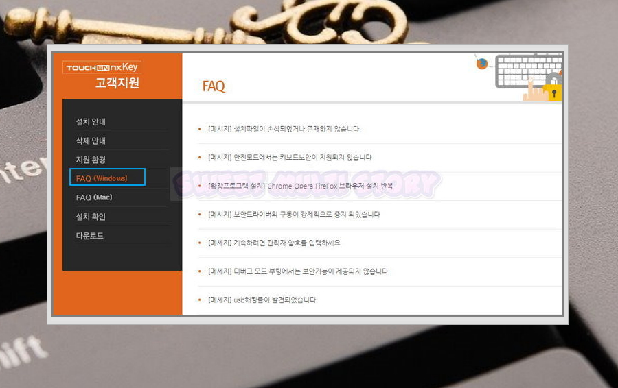 ▲ 국내에서 키보드 보안을 위해 가장 많이 사용되는 프로그램은 라온시큐어의 Touch EN key 입니다. 라온시큐어의 사이트에서 해당 소프트웨어의 설치파일을 내려 받거나 문제가 생겼을 때 해결할 수 있습니다.