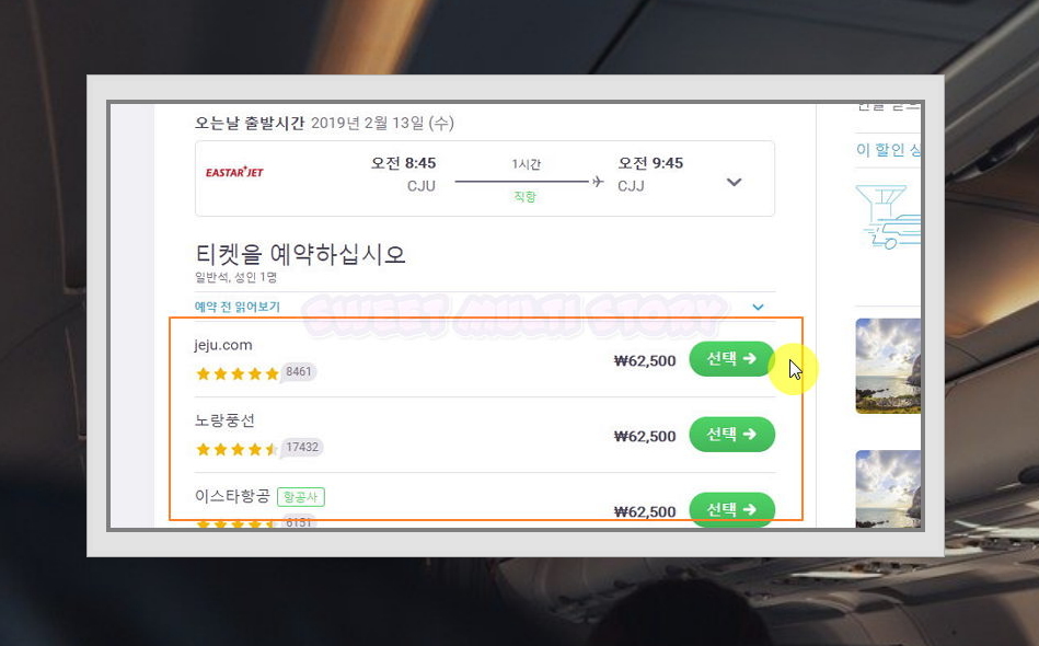 청주 제주 항공권 예매사이트 이용하여 최저가 찾기.