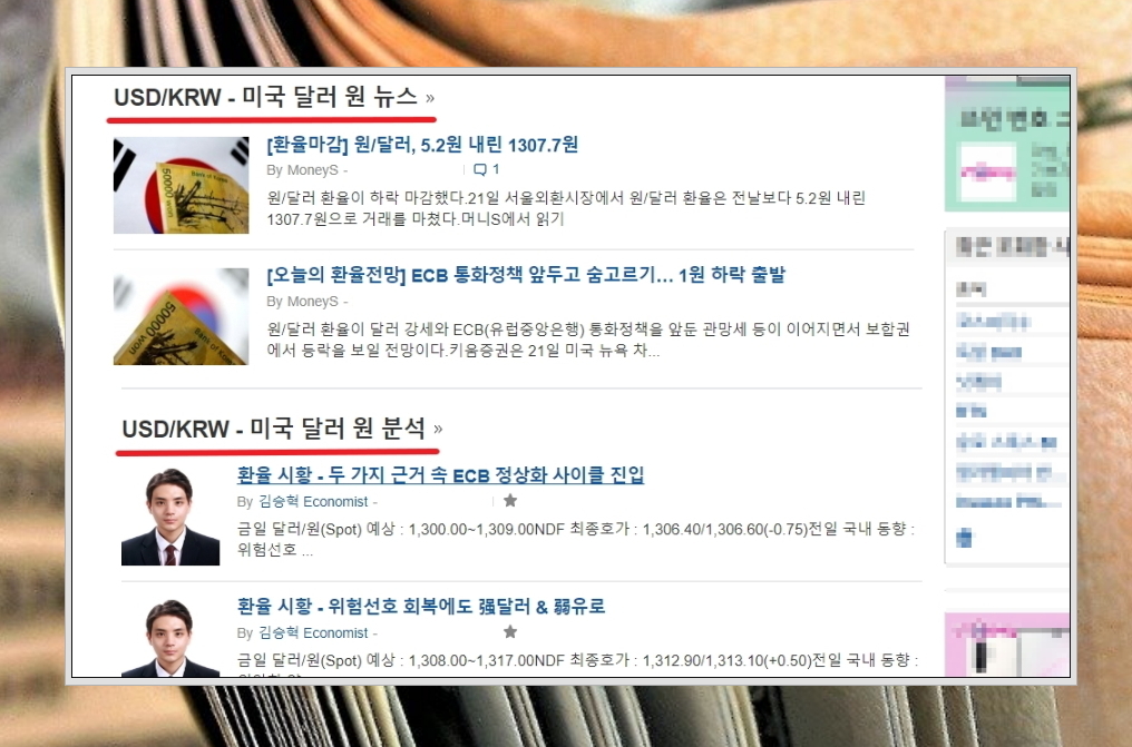 9. 이곳에서 달러에 관련된 오늘의 뉴스와 분석 자료를 볼 수 있는데요. 이러한 정보를 통해서 가격 움직임의 흐름을 예측하거나 현재 시세를 나타내는 이유를 알 수 있습니다.