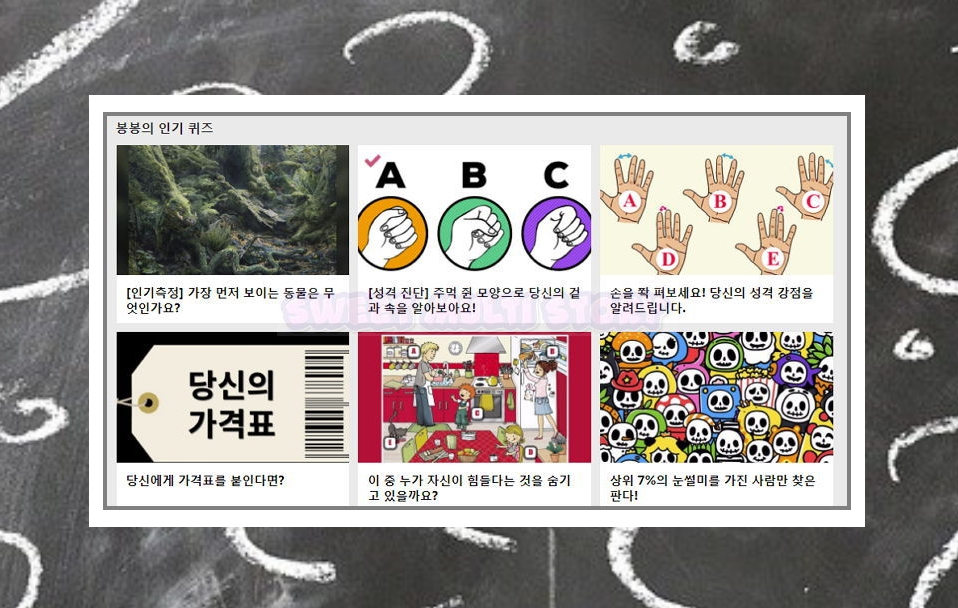 나의 성격이나 행운을 알아볼 수 있는 무료 심리 테스트 사이트를 소개해 드렸는데요. 대부분 간단한 퀴즈로 구성되어 있습니다. 생각보다 잘 맞사오니 심심할 때마다 이용하면 재미있어요.