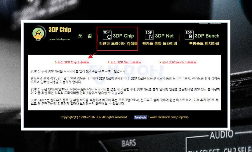 3dp chip에서 버튼을 클릭하면 인터넷 페이지가 열리는데요. 여기에서 드라이버 설치 파일을 내려받으실 수 있습니다. 설치를 완료한 후 재부팅을 하고, 동영상이 들어있는 파일을 실행해보세요. 그럼 끊기는 현상도 없고, 잘 나올꺼에요.
