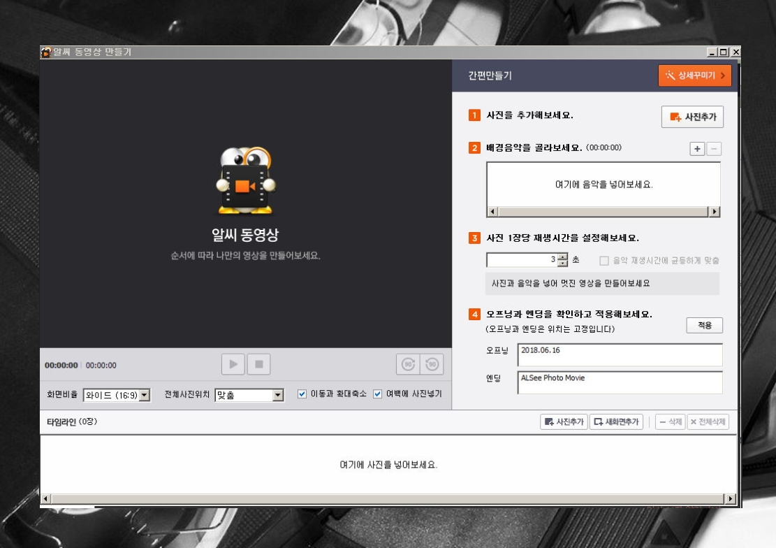 준비한 파일을 추가한 후 플레이 시간을 설정하면 쉽게 동영상을 만들 수 있습니다.