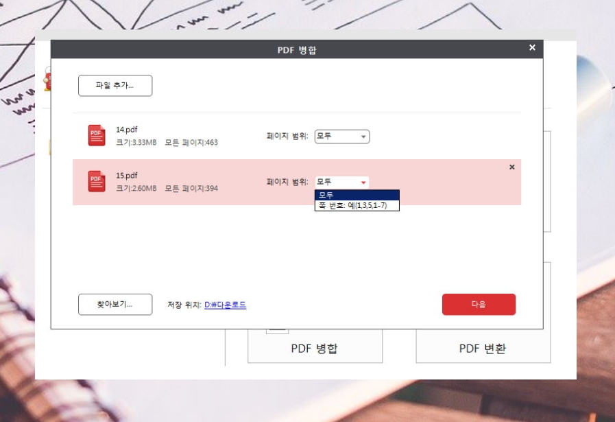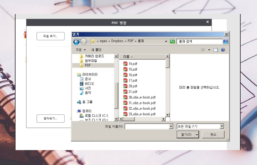 ▲ pdf 병합을 누르면 파일을 추가할 수 있습니다.