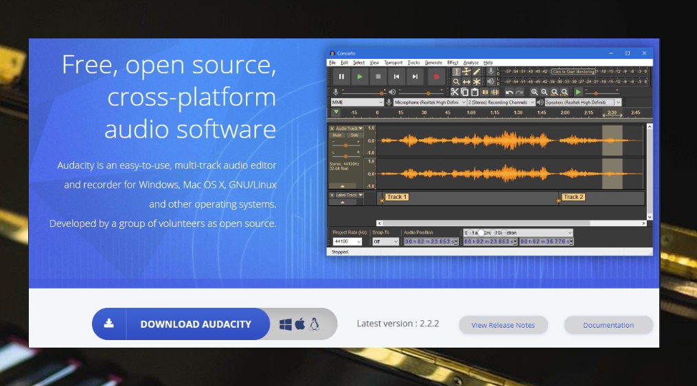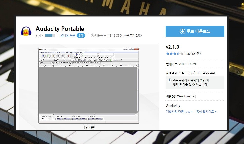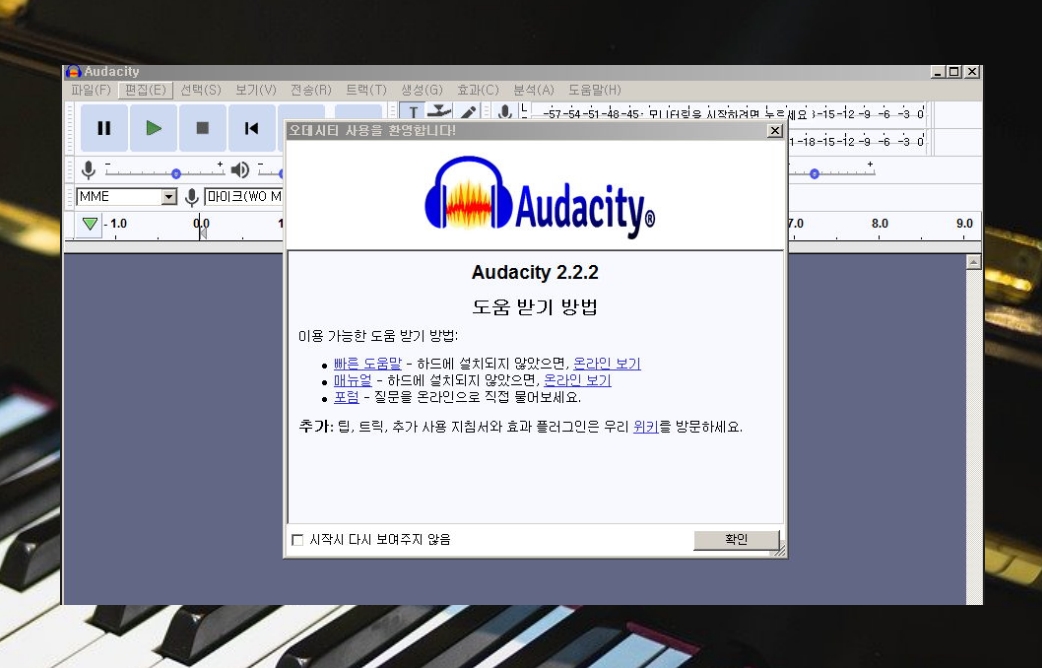 홈페이지에 명시되어 있듯이 무료로 사용할 수 있는 오픈 소스 오디오 편집 소프트웨어임을 알 수 있습니다.