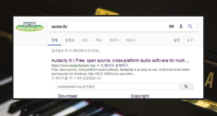 ▲ 검색 사이트를 통해 audacity 홈페이지에 접속해 주세요.