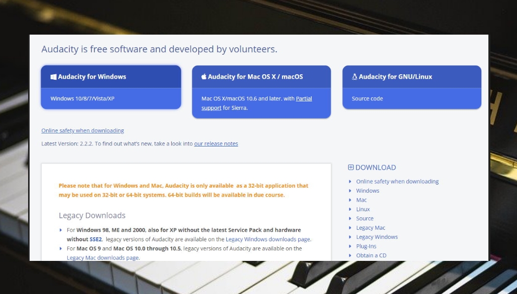 ▲ 사이트에 접속하면 Download audacity 버튼을 찾아 클릭해 주세요.