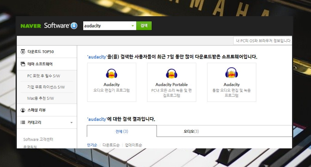 ▲ 검색 창에 audacity를 입력한 후 엔터키를 누릅니다.