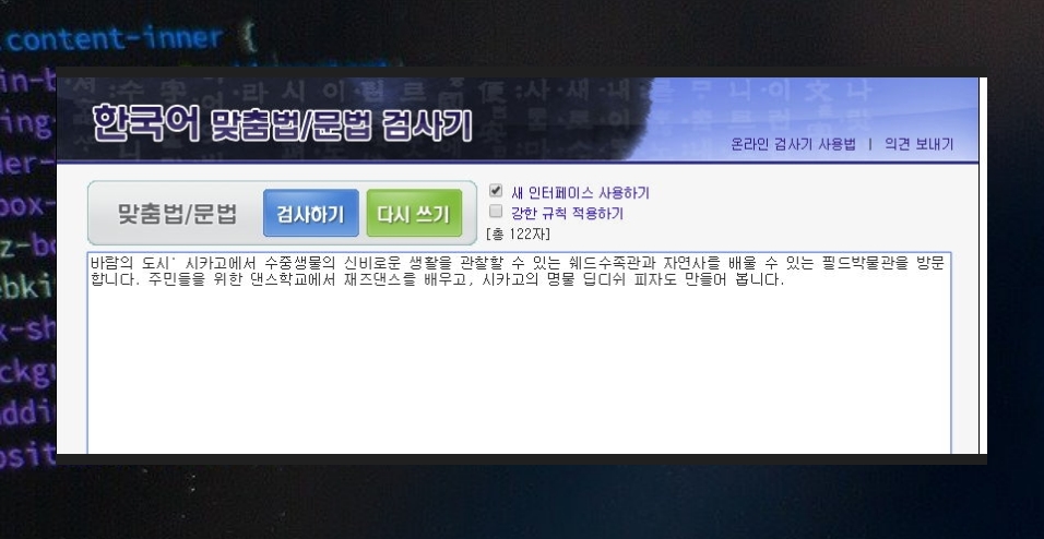 검색 사이트에서 한국어 맞춤법을 검색해 보세요. 그럼 부산대학교 인공지능 연구실과 나라인포테크에서 만든 프로그램을 만나볼 수 있어요. 사이트에 접속해보면 아시겠지만, 누구나 무료로 이용할 수 있어요. 회원 가입도 필요 없고요.