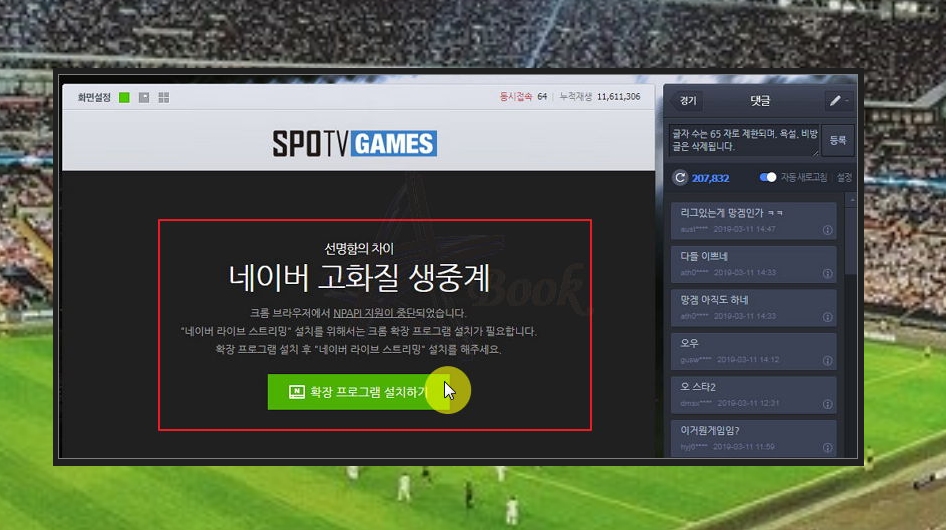 TV중계를 클릭하시게 되면 해외축구 생중계 영상을 보실 수 있는데 고화질로 보시기 위해서는 '네이버 라이브 스트리밍 프로그램'을 설치해주셔야 한답니다. 한번의 설치로 정말 생생하고 깨끗하고 화질 좋은 영상을 보실 수 있기 때문에 스포츠를 더 즐기기 위해서는 설치 하시는 것을 추천 드려요.