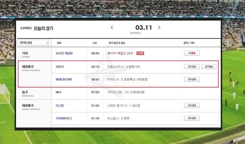 혹시나 깜빡 잠이 들어버려서 보지 못한 경기 또는 유럽과 같이 시간 차가 달라서 보기 힘들었던 경기 놓치셨다면, 걱정하지 않으셔도 돼요. 하이라이트부터 전체경기 영상 다시 볼 수 있기 때문에 언제든지 원하는 스포츠 부분의 [영상] 코너에서 편한 시간에 즐기실 수 있어요.