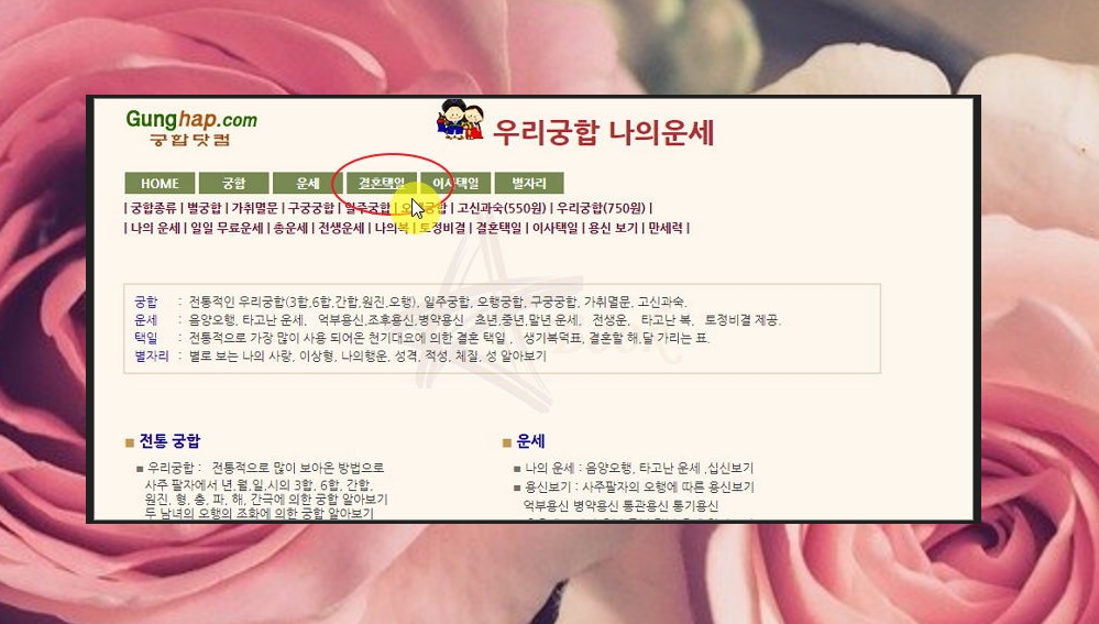 보통 점집에서 궁합을 보면서 결혼 날짜를 알아오는 경우가 많죠. 이제는 인터넷으로 하시면 돼요. 무료로 볼 수 있기 때문에 전혀 부담이 없어요. 궁합닷컴을 이용하여 택일을 해보도록 할게요.