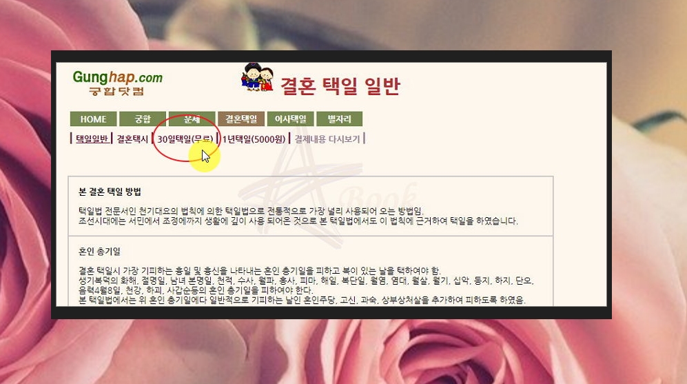 보통 점집에서 궁합을 보면서 결혼 날짜를 알아오는 경우가 많죠. 이제는 인터넷으로 하시면 돼요. 무료로 볼 수 있기 때문에 전혀 부담이 없어요. 궁합닷컴을 이용하여 택일을 해보도록 할게요.