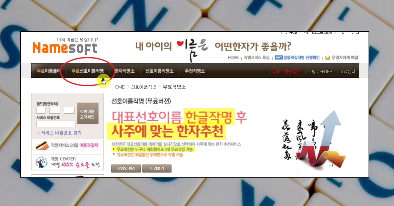 편리한 고급 수준의 무료 작명 사이트 이용하기.