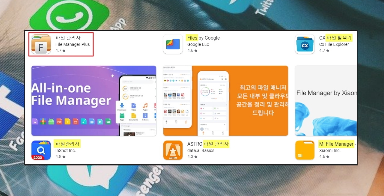 마지막으로 APK를 스마트폰에서 실행하면 구글 플레이 스토어에 대한 재설치가 완료되는데요. 대부분의 스마트폰 기기에는 파일 탐색기 어플이 기본으로 탑재되어 있습니다. 파일 탐색기의 명칭은 기기에 따라 조금씩 다릅니다. 보통 "파일", "관리", 탐색"이라는 단어가 들어가는데요. 해당 어플을 찾아서 실행한 후 APK 파일을 터치하면 인스톨을 시작할 수 있습니다.