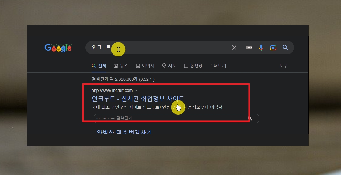 그럼 많은 자기소개서 성장과정 잘쓴예 자료를 구하는 방법을 알려 드리겠습니다. 구인구직 사이트로 유명한 인크루트 홈페이지를 이용하면 되는데요. 이곳에서는 여러 가지 채용 관련 서비스나 유용한 도구를 많이 제공하고 있어요. 그럼 홈페이지에 접속하여 어떻게 자기소개서 자료를 이용하는지 알려 드리겠습니다.