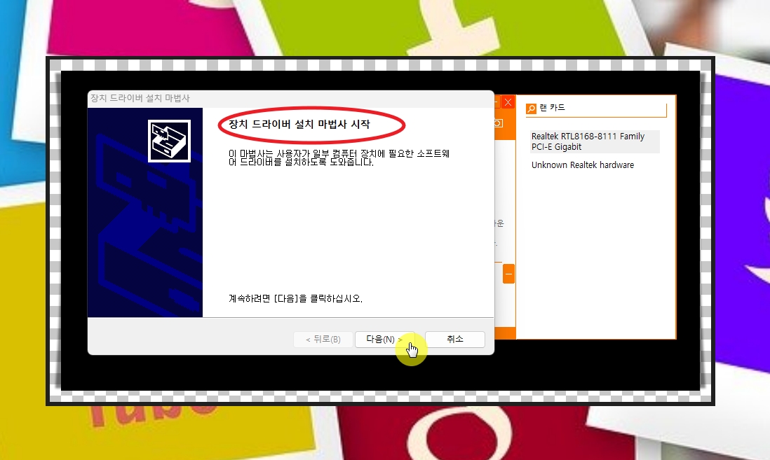 ▼ 랜카드 이름을 클릭하면 장치 드라이버 설치 마법사가 실행이 되는데요. 안내에 따라 다음 버튼만 클릭해 주면 네트워크 어댑터 드라이버를 손쉽게 설치할 수 있습니다.