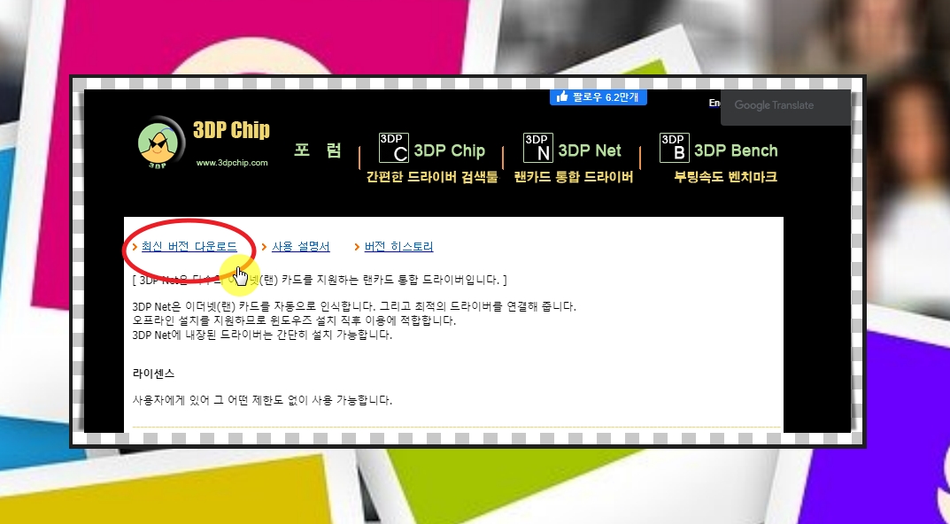 ▼ 제가 앞에서 언급한 프로그램은 3dp net 입니다. 어떤 제조사에서 만든 것이든 그에 맞는 드라이버를 자동으로 찾아서 설치할 수 있도록 도와줍니다. 그럼 프로그램 제작사 사이트인 3dp chip 사이트에 접속해 주세요.