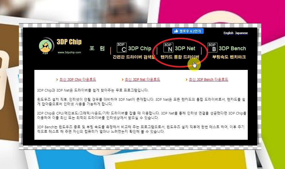 ▼ 3dp chip 사이트에 접속하면 메뉴에 있는 3dp net을 선택합니다.
