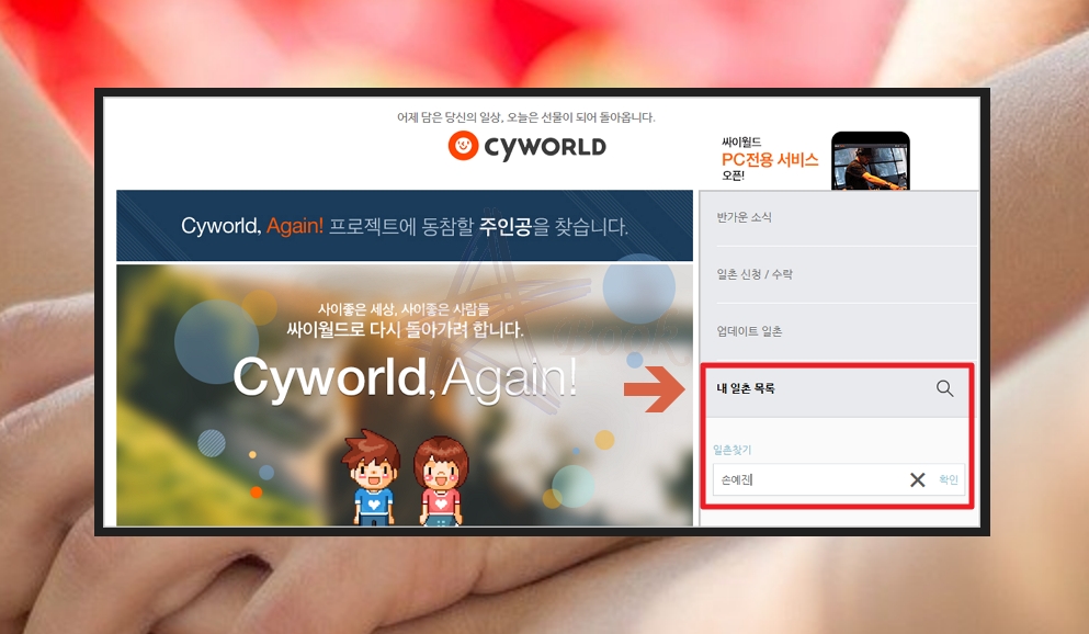 최근 cyworld를 접속해보니 새롭게 다시 시작한다는 문구가 있었습니다. 저도 많이 기대가 되는데요. 인터넷상에서 친구를 찾으려고 하는데, 일촌을 맺은 사람을 제외하고는 아무도 찾을 수 없었습니다. 과거에는 친구의 생년월일과 이름을 알면 찾기 쉬웠는데요. 매우 아쉽습니다. 하지만 방법은 있어요.
