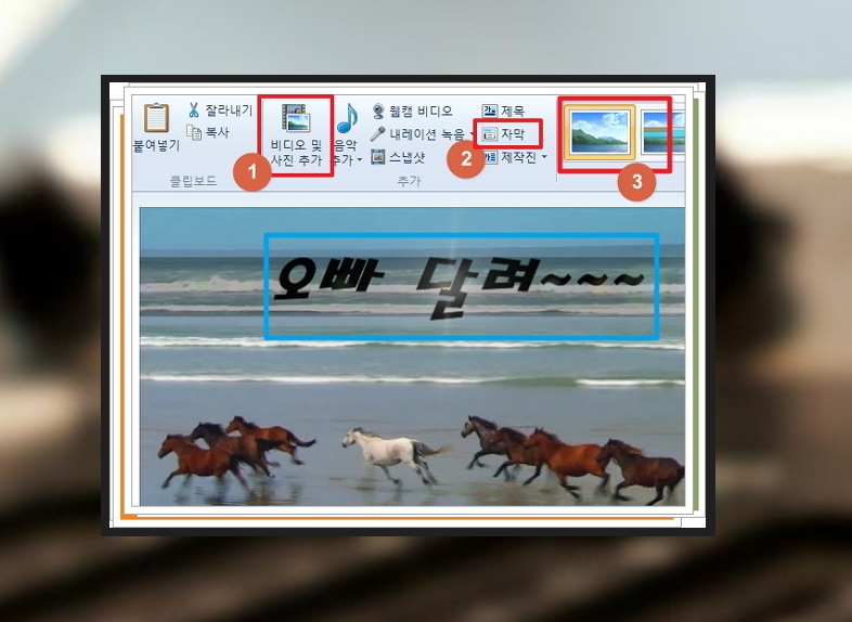 3번 부분이 테마 부분인데요. 자막 누르고 테마 지정하면 멋진 자막 완성입니다.