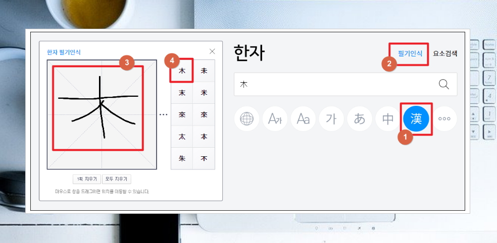 b. 한자 필기인식기 이용하기