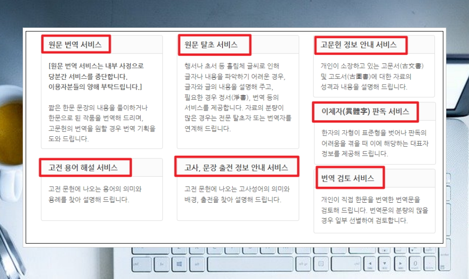 프로그램 형식의 번역기는 아니지만, 한문 고전에 대한 깊이 있는 번역을 하고 싶을 때에 유용한 사이트가 있습니다. 바로 한문고전번역원 사이트인데요. 이곳의 경우 앞서 언급한 한문 관련 서비스를 제공하고 있습니다.
