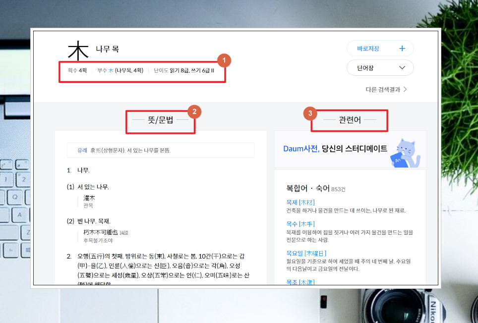 요즘에는 이러한 번역기의 서비스 품질이 매우 높습니다. 다음 어학사전에서 제공하는 서비스를 이용하면 되는데요. 옥편을 볼 줄 몰라도 누구나 쉽게 원하는 사전 정보를 얻을 수 있어요.