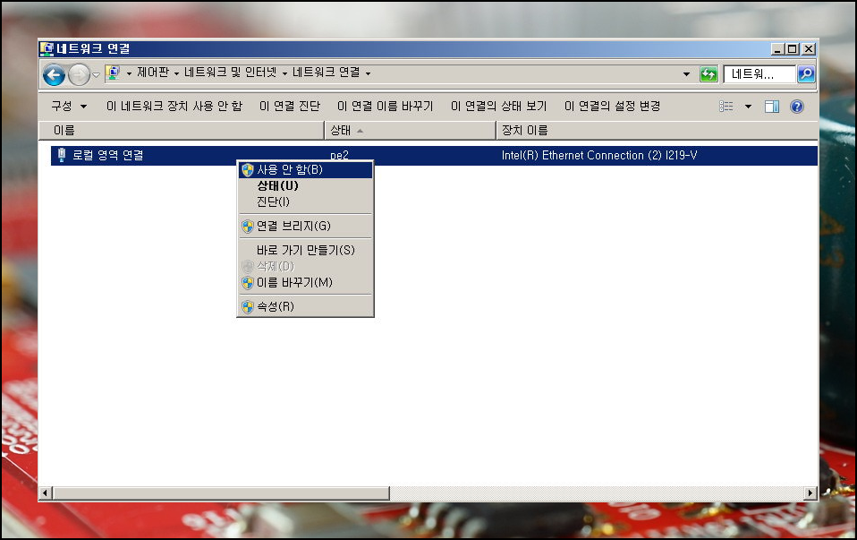 로컬 영역 연결에 마우스 우클릭을 합니다.