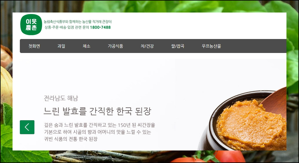 이웃농촌은 농림축산식품부와 함께하는 장터인데요. 홈페이지가 깔끔하고, 설명이 명확해서 편리합니다. 여기서 투명한 거래, 합리적 소비, 안전한 먹거리 찾기를 할 수 있어요.