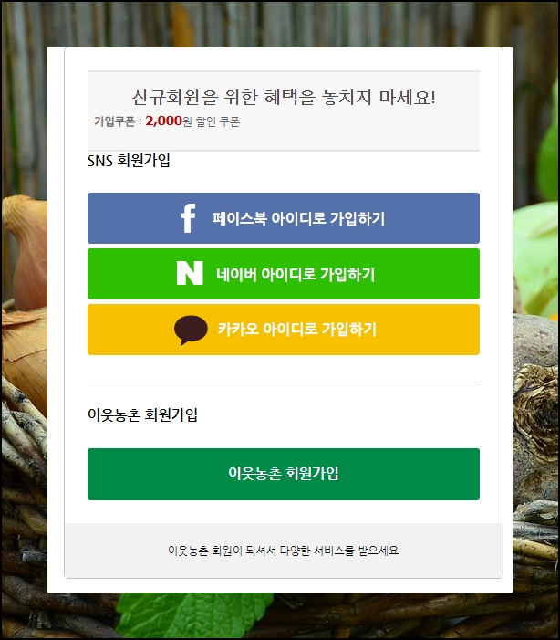 생산자 입장에서 직거래 사이트를 이용하고 싶다면 홈페이지 오른쪽 위에 있는 '이웃농부 되기'를 클릭하시면 됩니다.