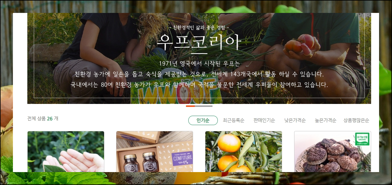 우프에 대해서 저도 처음 들어보았는데요. 친환경 농가에서 일을 도와주고 숙식을 제공받는 것을 말한다네요. 해당 농가에서 나온 친환경 농산물을 사이트에서 구매도 가능해요.