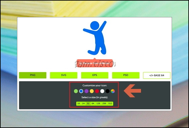 바로 여러가지 색과 이미지형식으로 변경이 가능합니다. PNG, SVG, EPS, PSD 형식으로 할 수 있고, 색도 가장 오른쪽에 보시면 엄청 많은 색이 가능하답니다.