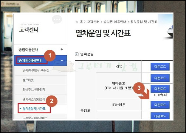 ITX 노선 시간표를 살펴보겠습니다. 먼저 레츠코레일 사이트에 접속하셔야 되는데요. 이전에는 코레일닷컴이었는데, 레츠코레일로 이름이 변경되었답니다. 해당 홈페이지에서는 ITX 청춘열차 외에도 다양한 기차에 대한 시간표와 기타 정보를 알 수 있는데요. 하나씩 따라해보시면 쉽습니다.