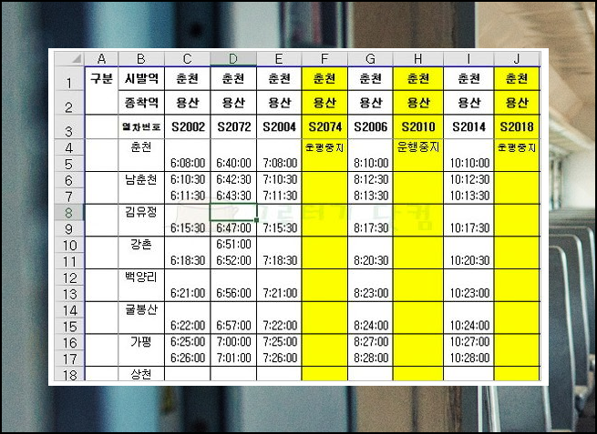 오늘은 ITX 청춘열차 노선 시간표를 다운받는 방법과 다양한 정보를 알아보았습니다. 금일 용산-춘천 소요시간은 1시간 13분에서 22분 사이가 되네요. 여행에 참고하시길 바랍니다.