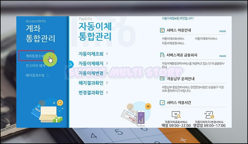 금융결제원에서 운영하고 있는 Payinfo는 누구나 이용하실 수 있는데요. 금융계좌 조회는 공휴일이라도 이용하실 수 있습니다. 잔액를 이전할 수도 있고, 자동이체를 확인, 해지, 변경 모두 가능해요.