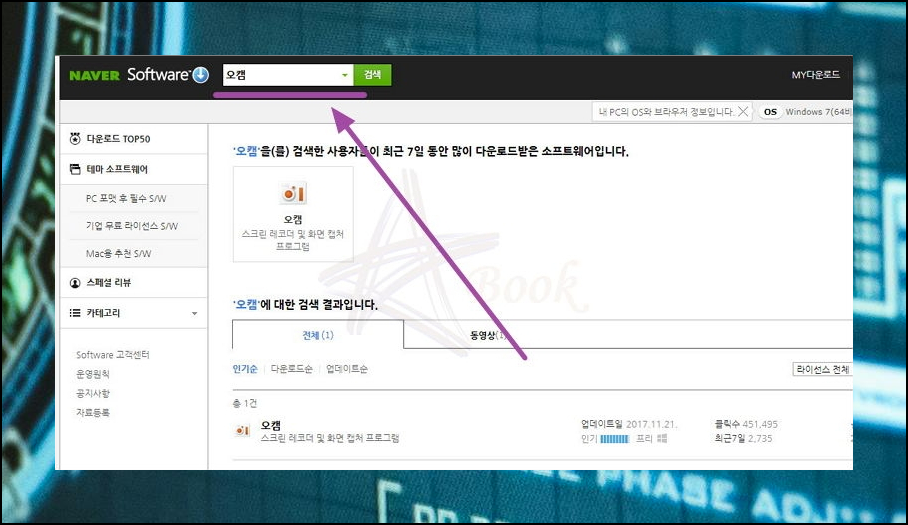 영상 제작이나 편집을 할 때에 사용할 수 있는 소프트웨어는 많아요. 대체적으로 성능이 뛰어날수록 비용이 비싸고, 사용하기 어려운 경우가 많아요. 그렇기 때문에 전문가가 아니라면 성능보다는 쉽게 사용할 수 있는 프로그램을 선택하는 것이 좋아요. 제작에 필요한 동영상 녹화 기능을 갖춘 무료 소프트웨어를 소개해 드릴게요. 바로 오캠인데요. 네이버 소프트웨어 자료실에서 쉽게 다운 받으실 수 있어요.