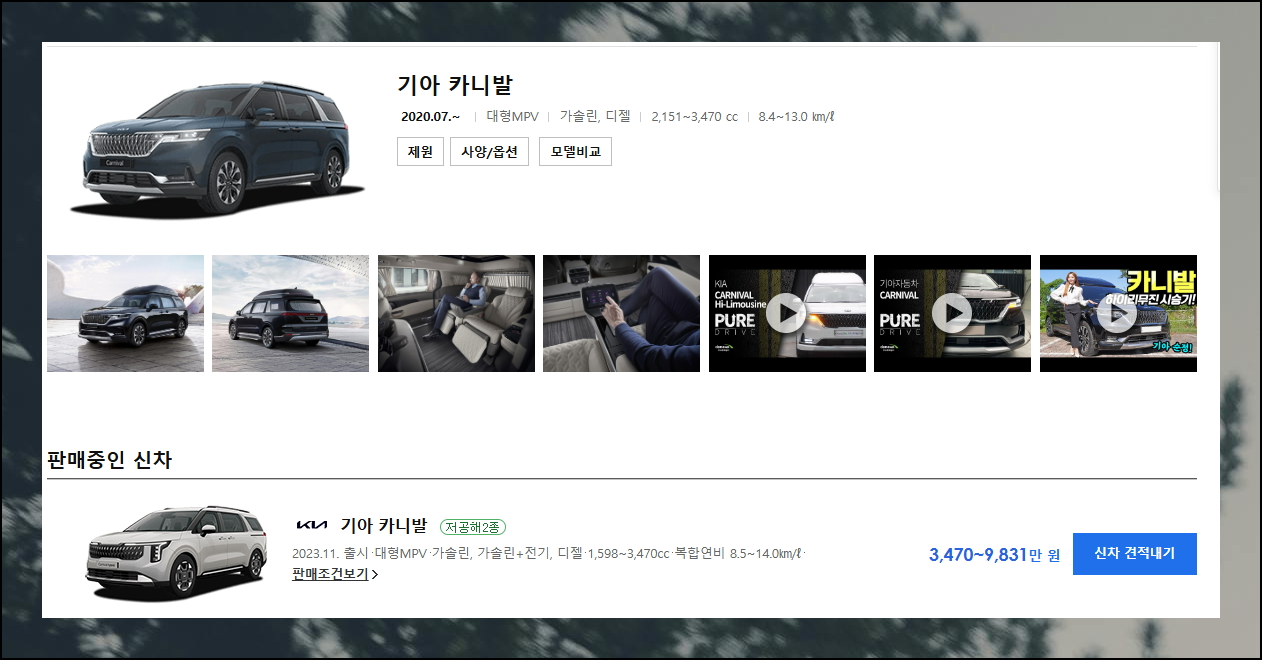 다나와 자동차 웹사이트를 통해 누구나 쉽게 카니발 9인승의 가격 정보를 얻을 수 있습니다. 가격표 확인은 별도의 회원가입 절차 없이 즉시 이용이 가능하니 편리하죠.