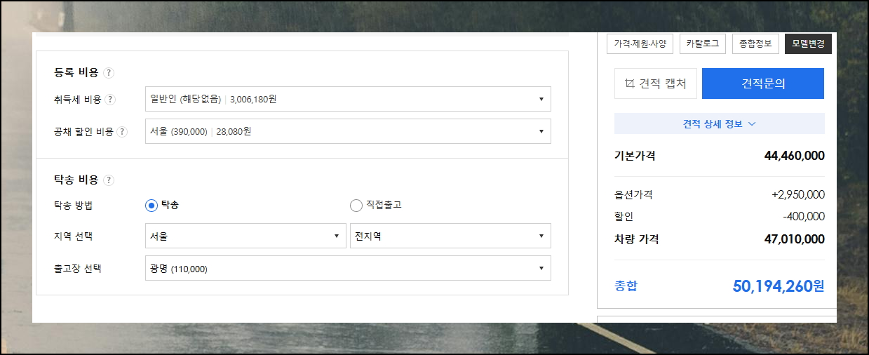 온라인 시스템을 활용하면 세부 모델부터 색상, 옵션까지 모든 선택 사항에 따른 가격 변동을 실시간으로 확인할 수 있어요. 게다가 지역별 세금과 공채 비용까지 한 번에 계산해주니 실제 구매 시 발생할 총비용을 정확하게 예측할 수 있죠.