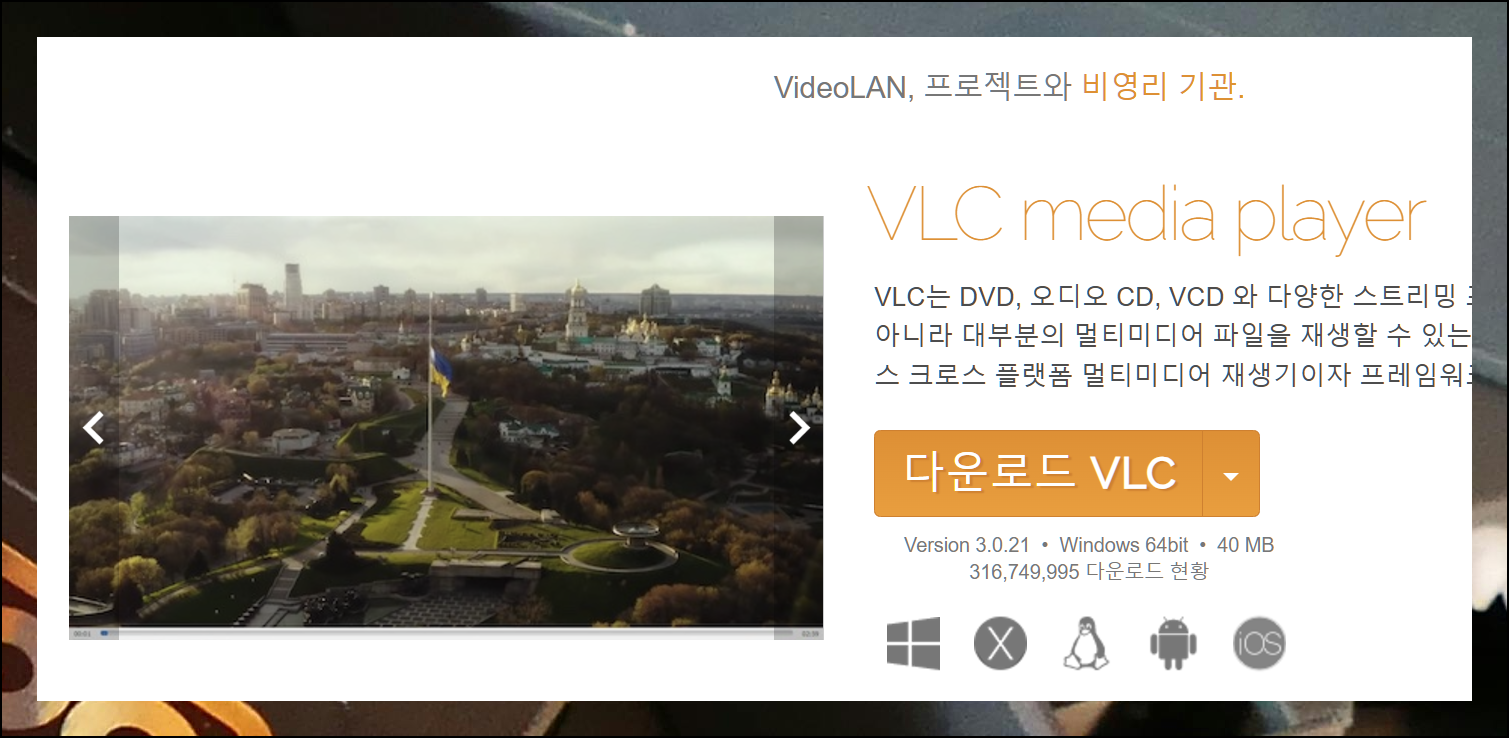 공식 웹사이트에서 무료로 간단히 다운로드할 수 있으며, 윈도우부터 iOS, 맥북, 안드로이드, 리눅스까지 폭넓은 호환성을 자랑합니다. 통합코덱 설치하기 작업을 진행하지 않아도 동영상뿐만 아니라 음악 재생도 가능하여 멀티미디어 플레이어로서 활용도가 매우 높아요.