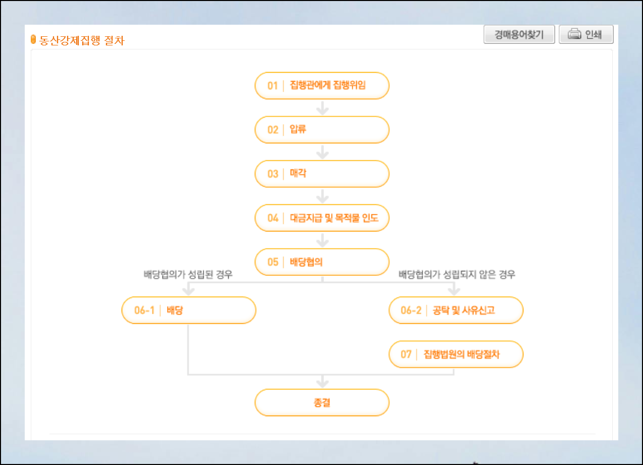 사건 처리 과정은 생각보다 단순해요. 집행관에게 위임하고 압류 단계부터 시작됩니다. 이후 매각과 대금지급, 배당 절차를 거쳐 마무리되는데요. 대법원 웹사이트에서 관련 정보와 기본 상식을 자세히 확인할 수 있으니 참고하시기 바랍니다.