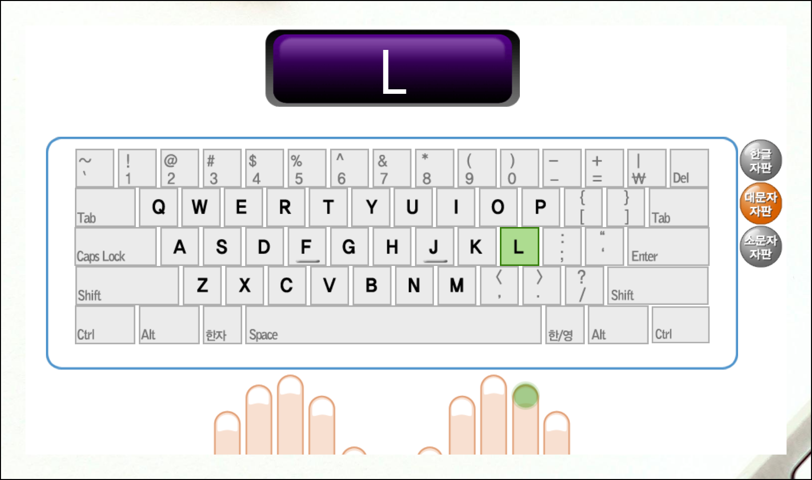 한글 연습이 끝나면 대문자 자판을 클릭해서 영문 타자를 시작해보세요. 기초부터 차근차근 배우면 컴퓨터로 영문 타자도 어렵지 않습니다.