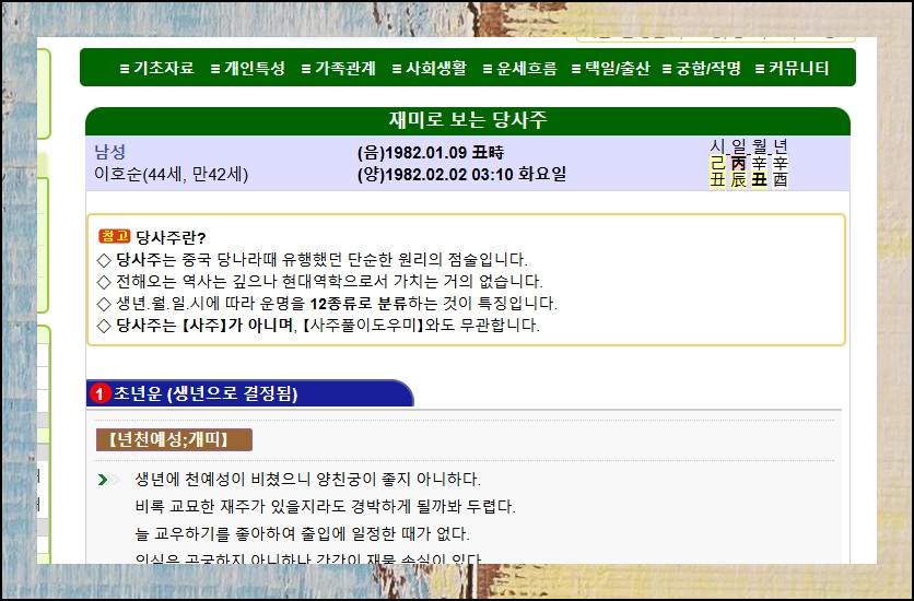 당신의 과거와 현재, 미래가 궁금하신가요? 사주풀이 도우미의 당사주를 통해 초년운부터 말년운까지 무료로 알아볼 수 있어요. 인생의 중요한 순간들을 미리 준비해보세요.